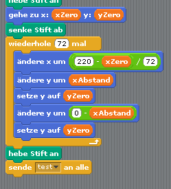 Zu Beginn der zweiten Aufgabe benötigen wir wieder ein Objekt, das uns als Stift zum Zeichnen dient. Dies kann man zum Anfangspunkt des Koordinatensystems setzen, die Koordinaten sollte ja schon in Variablen gespeichert sein.