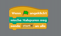 Wenn du beim Zeichnen einen Fehler machst, kannst du bei dem Bühnen-Objekt unter dem Bereich Mahlstift alle Malspuren entfernen, indem du den Block doppelklickst. Wenn du willst, kannst du das auch in dein Programm einbauen.