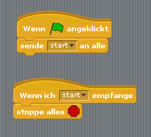 Über die Funktionen in der Mitte kannstdu auch neue Objekte erzeugen oder einfügen. Durch das Interagieren der Objekte funktioniert das Programm.